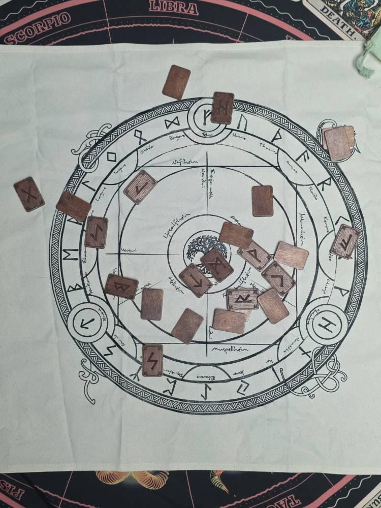 The divination club I run wanted to start learning the runes. I thought it would be great to have a Rune cloth for casting the runes. I found this one and it was great because it includes the relevant mythology to make the cast more powerful. I had some great conversation with the owner. He's passionate about Runes. I am looking forward to seeing new designs in the future. He shipped the item quickly. It even included a small pouch thar can hold the cloth or runes.